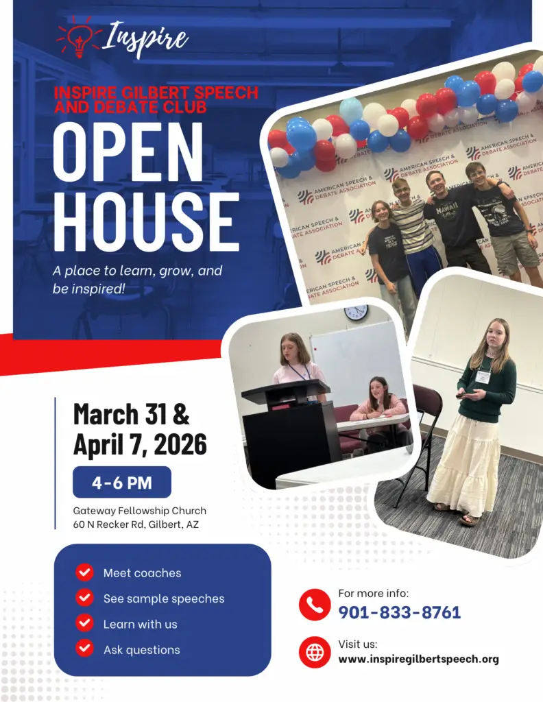 We meet weekly on Tuesday afternoons to learn together. We take turns being the keynote speaker giving an inspirational message, then as a group we have a 20-30 minute lesson on either speech or debate. After the lesson, we work together to brainstorm, write, edit and present speeches. On debate weeks after the lesson we have practice debates, research together, or discuss details related to our cases. It is a collaborative opportunity to grow.